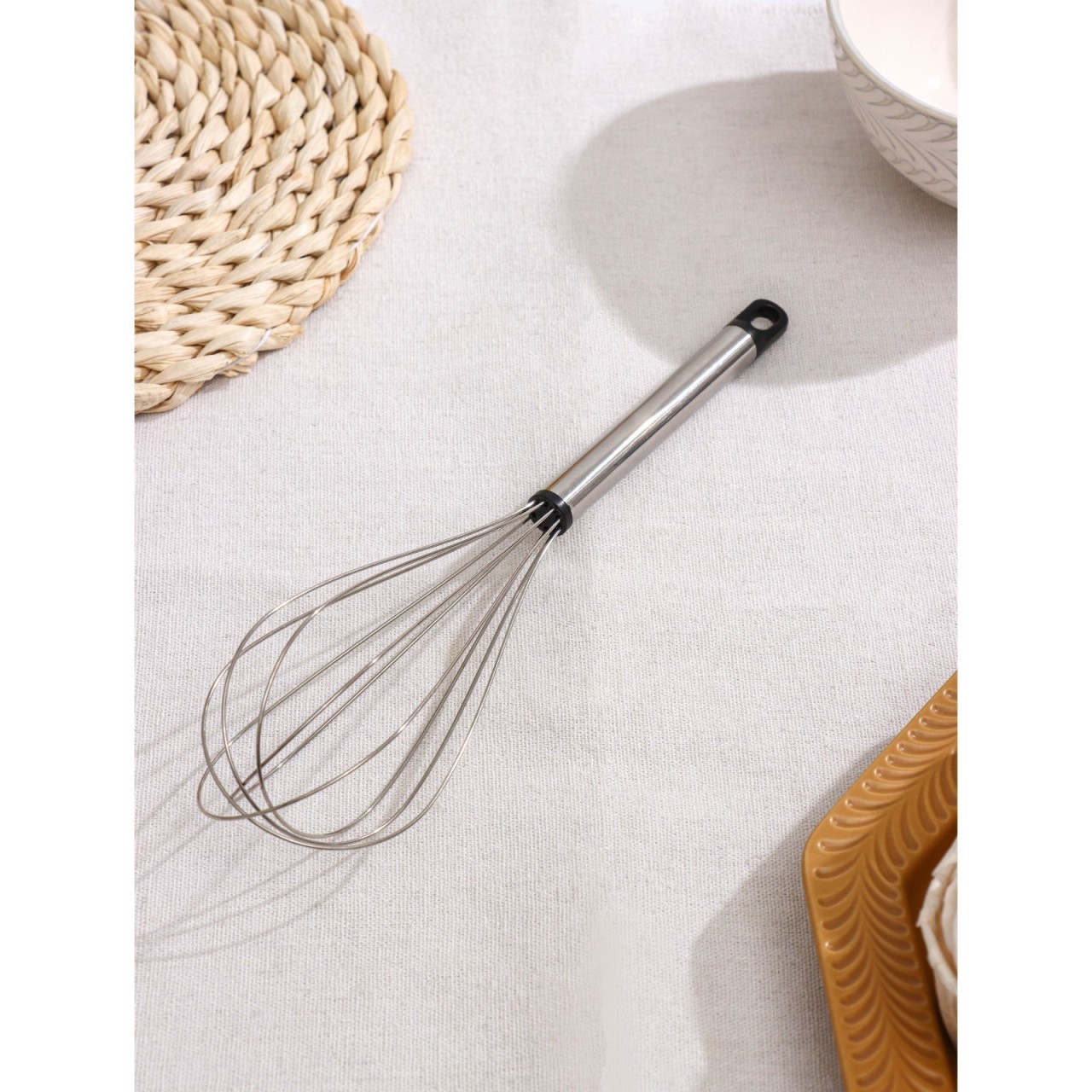 Венчик метал 24-25см Помощник поможет быстро взбить яйца для завтрака, перемешать ингредиенты для соуса, сделать тесто для блинов или приготовить кляр без комочков. Венчик выполнен из нержавеющей стали. Изделие легко моется и не занимает много места при хранении.